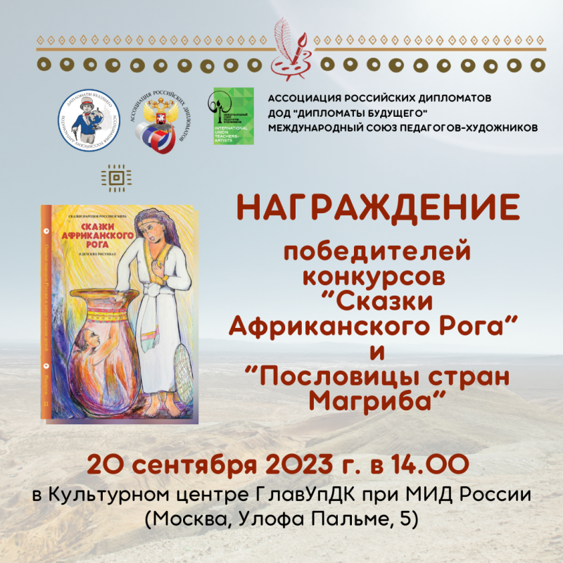 04 сентября 2023 - Уважаемые коллеги! Рады вам представить итоги Международного конкурса "Сказки народов России и мира глазами детей" - "Пословицы и поговорки стран Магриба"! Победителям конкурса "Пословицы стран Магриба" https://art-teacher.ru/news/ необходимо до 10 сентября прислать качественную копию работы (скан) на адрес art-teacher.ru@yandex.ru СПИСОК ПОБЕДИТЕЛЕЙ Также публикуем итоги Международного конкур...