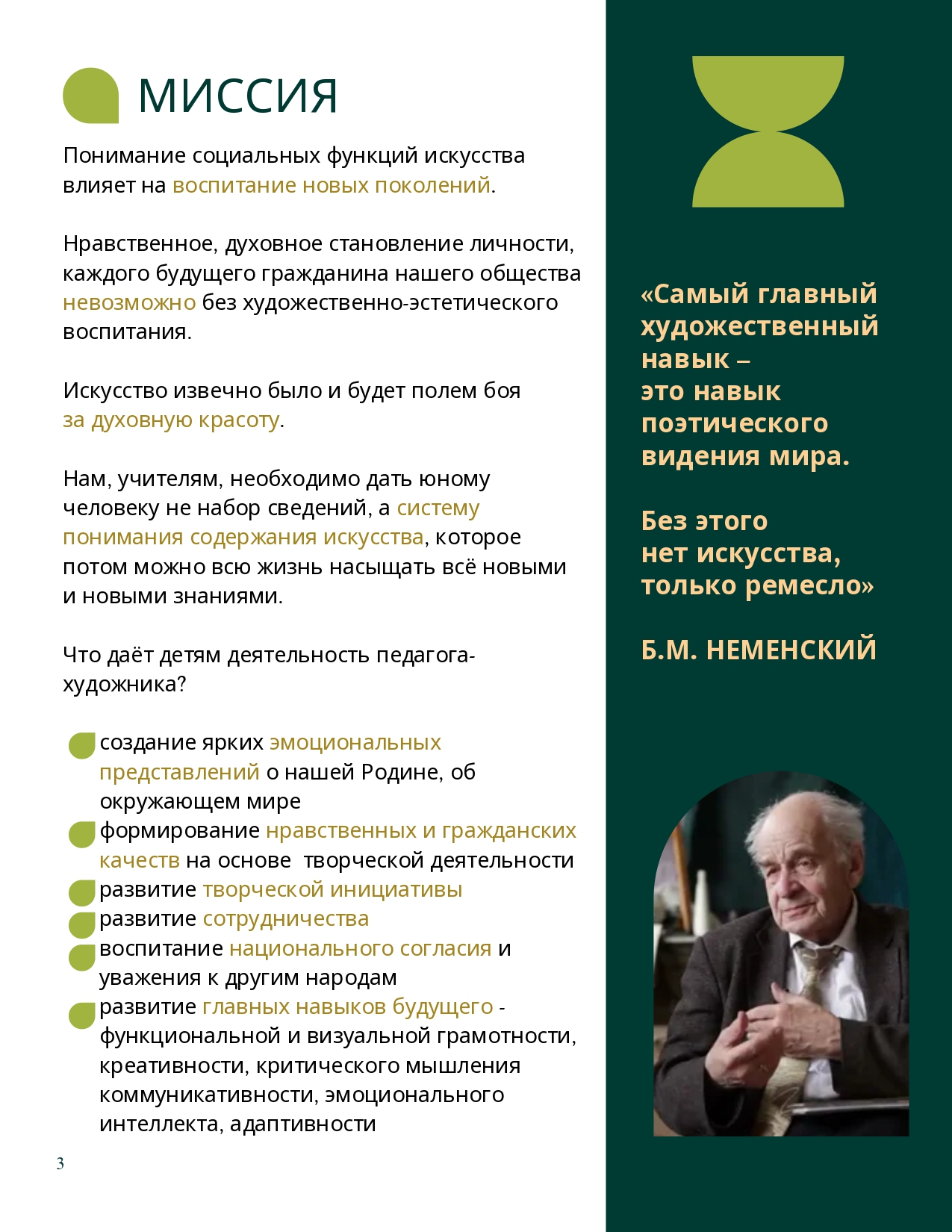 - на региональном и федеральном уровне проводить идею «Полноценное образование и воспитание — через искусство»;
