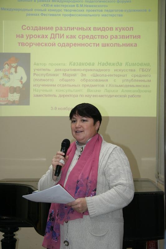 Казакова Надежда Кимовна - учитель декоративно-прикладного искусства ГБОУ «Школа-интернат среднего (полного) общего образования с углубленным изучением отдельных предметов», г. Козьмодемьянск, Республика Марий Эл.