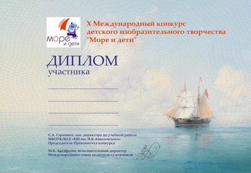 СКАЧАТЬ ДИПЛОМ лауреата X Международного конкурса детского изобразительного творчества "Море и дети"