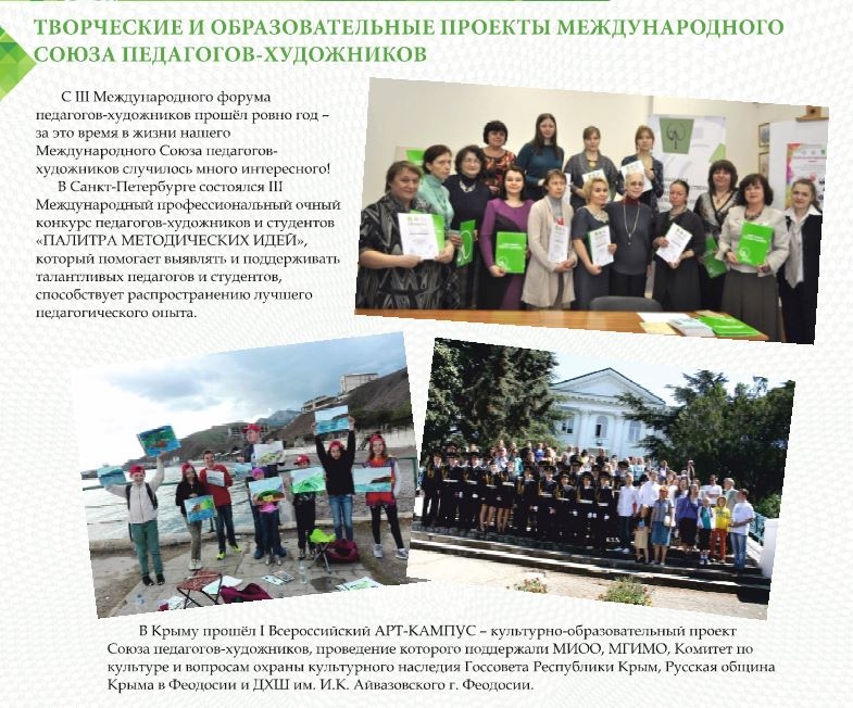 Предлагаем вам скачать электронный журнал с информацией о площадках IV Международного форума педагогов-художников, а также проведённых и планируемых мероприятиях Союза!