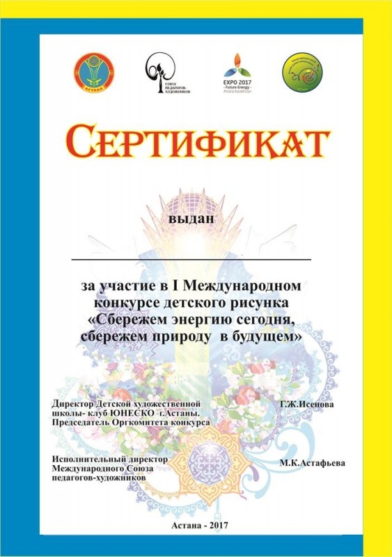 В Казахстане подведены итоги Международного конкурса рисунков "Сбережем энергию сегодня, сохраним природу в будущем!". Победители приглашены в Астану на Церемонию награждения, которая состоится 16-18 июня 2017 г.! Поздравляем!