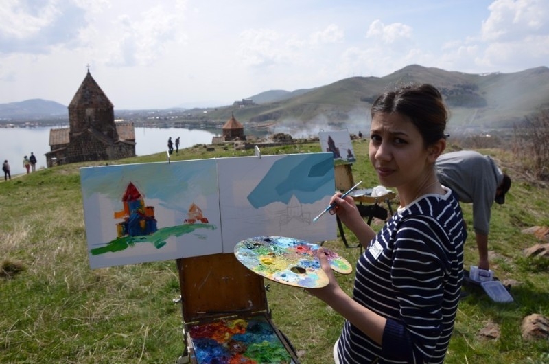 В один из дней мы совершили незабываемое путешествие на озеро Севан. Поднявшись к подножию монастыря Севанаванк, который находится на полуострове в центре озера, вместе с армянскими коллегами любовались величием окружающего ландшафта. Выполненные этюды и зарисовки полны солнца и воздуха.