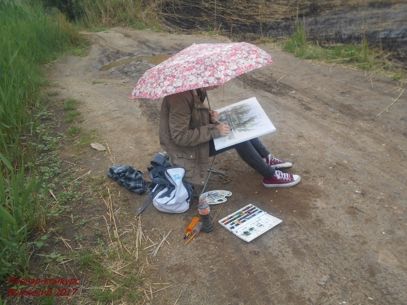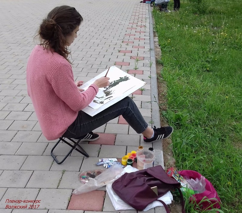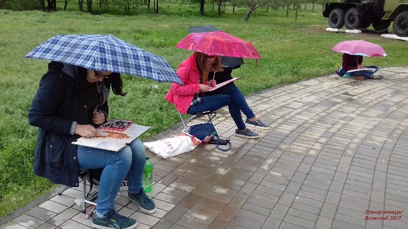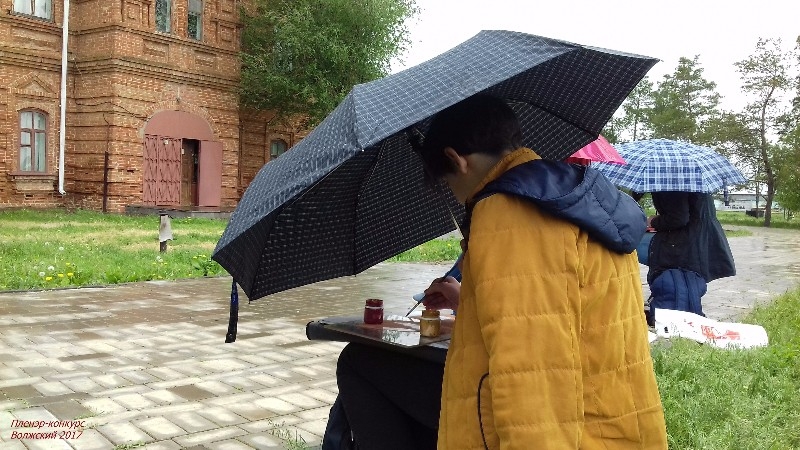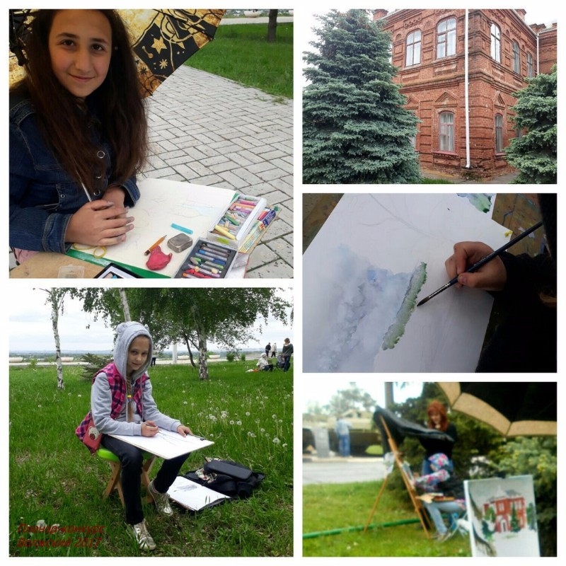 В течение четырёх часов участники выполняли конкурсную работу - этюд или зарисовку с натуры городского пейзажа или здания «СТАРОЙ ШКОЛЫ» (Картинная галерея г. Волжского). Даже начавшийся дождь не стал помехой юным художникам.