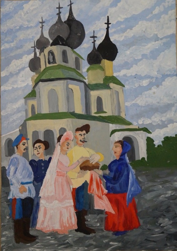 Ребята с интересом осмотрели экспонаты музея и выставку из 25 работ учащихся ДХШ им. Н.Н.Дубовского на казачью тему, действующую в рамках областного тематического «круглого стола». Вдохновились они экскурсией в Воскресенский собор. Старейший на Дону каменный православный храм – памятник архитектуры начала ХVIII века. Белоснежная девятиглавая жемчужина Дона, выстроенная в стиле барокко, поразила уникальным пятиярусным позолочённым иконостасом, оклады 149 икон которого искусно вырезаны из дерева. Из необычных деталей привлекли внимание металлические плиты перед алтарём, где находятся отлитые надписи о том, что на этом месте в своё время молились российские императоры и великие князья. И, конечно же, цепи на входе в храм, коими был закован народный бунтарь Степан Разин перед отправкой в Москву. Мало кто устоял, чтобы не подержаться за них, а определив тяжесть, посетовать, как человек мог это выдержать...