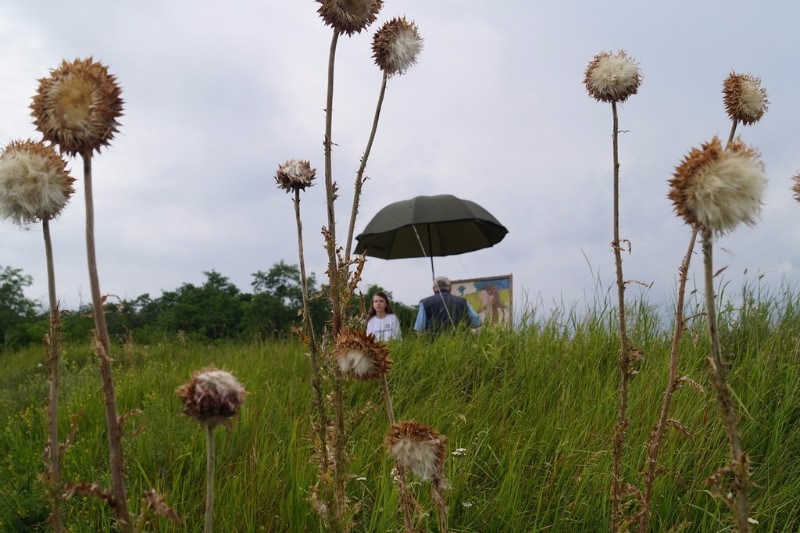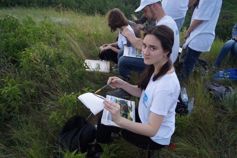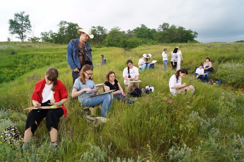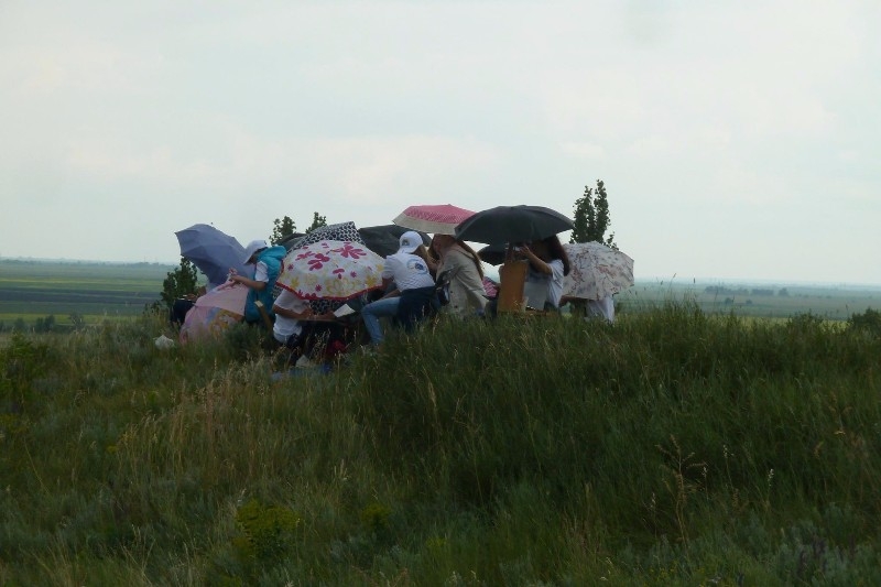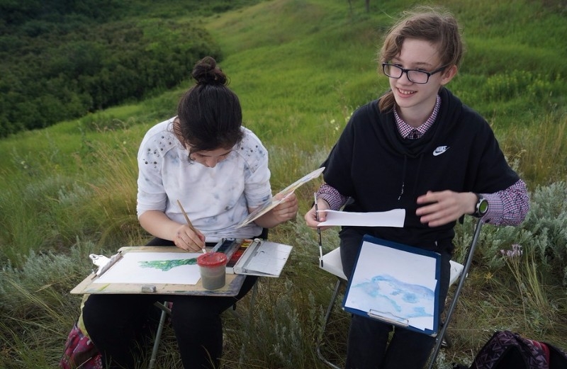 Не стал дождик помехой и на Мишкинских буграх, куда позднее направился отряд юных живописцев. По одному из преданий о храбреце-атамане ХVI века Мишке Черкашенине, якобы заговорённом от пуль, стоянки своего войска знаменитый казачий предводитель делал именно на этих взгорьях. Ребята с любопытством обследовали территорию, словно пытались найти какие-то древние знаки... Впечатления от увиденного, от общения с природой были настолько сильны, что невзирая на дождь, открыв зонты, продолжали работать. Но и пример у них был что надо – член Союза художников России и председатель городского клуба художников Константин Сиденин. К тому же Константин Евгеньевич является членом творческой группы «Мишкинские бугры» на протяжении вот уже 20 лет со дня её создания. В коллективе собрались единомышленники, приверженцы единой живописной философии –работы с натуры в любую погоду и любое время года, а не с картинок и фотографий. Наблюдая за действиями Сиденина, дети получали мастер-класс на природе, видели, что может сделать мастер за короткий срок, как планирует свою работу, какими приёмами пользуется. Именно на таких небольших примерах и учатся пониманию будущей профессии.
