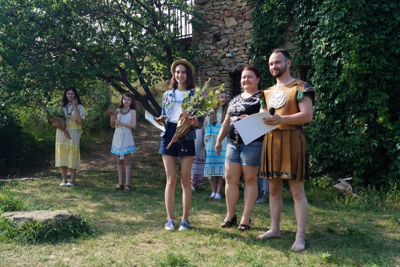 И сама экскурсия по археологическому музею-заповеднику под открытым небом, некогда античному городу, и мастер-классы по старинным ремёслам, в числе которых было валяние войлока, и работа на природе среди древних развалин, и пикник после завершения пленэра – всё это уже создало особое настроение – от встречи с прошлым и ощущением себя частью мировой истории. Костюмированное представление в духе греческих времён с вручением наград у знаменитой Танаисской башни, зазвучавшие национальные греческие мелодии добавили ярких эмоций не только победителям. Под зажигательную мелодию «Сиртаки» в хоровод встала вся детвора!