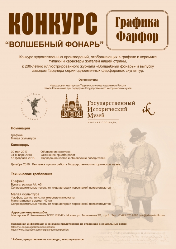 Конкурс художественных произведений, отображающих в графике и керамике типажи и характеры жителей нашей страны к 200-летию иллюстрированного журнала «Волшебный фонарь» и выпуску заводом Гарднера серии одноименных фарфоровых скульптур.