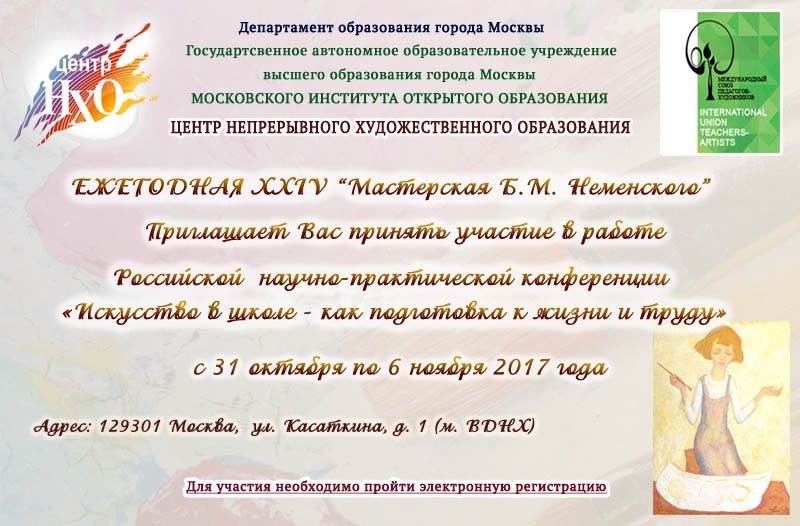 Центр непрерывного художественного образования ГАОУ ВО МИОО приглашает Вас принять участие в