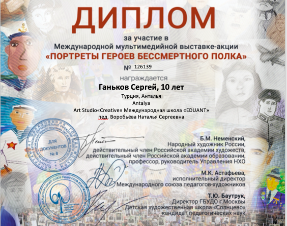 Очную церемонию награждения мы обязательно проведём - когда это будет возможно. И вручим дипломы, книги и наши медали "ЮНЫЙ ХУДОЖНИК - ДИПЛОМАТ".