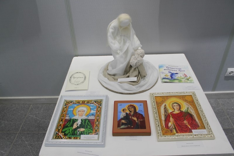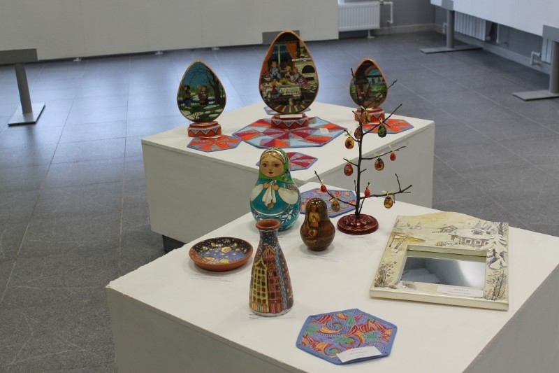 В экспозиции представлено более 100 работ. Это живописные произведения, выполненные в разных техниках, форматах, широко раскрывающие жанровый ряд (пейзаж, портрет, натюрморт, исторические картины). Разнопланово, по-авторски самобытно представлено декоративно-прикладное творчество: роспись по дереву, лоскутное шитьё, керамика, ручное ткачество (гобелен и ворс), текстильная кукла.