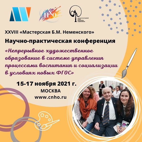 Управление непрерывного художественного образования ГБОУ ДПО ГМЦ ДОНМ и Международный союз педагогов-художников приглашают Вас принять участие в Научно-практической конференции "Непрерывное художественное образование в системе управления процессами воспитания и социализации в условиях новых ФГОС". XXVIII «Мастерская Б.М. Неменского» с 15 по 17 ноября 2021 г.