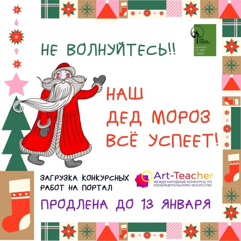 Мы с хорошей предновогодней новостью! Мы продлеваем время для загрузки работ текущих конкурсов до 13 января! Во время новогодних каникул можно и отдохнуть, можно и творчески поработать! Именно для этого мы оставляем открытыми галереи текущих конкурсов на портале www.art-teacher.ru. Вот вам прекрасные задания для креативного проведения праздничных дней!
