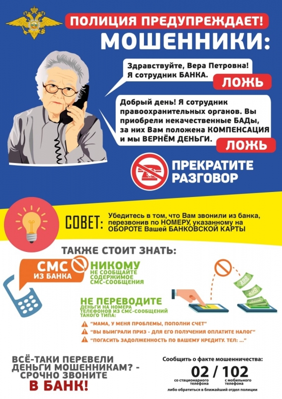 В связи с участившимися случаями мошенничества и аферизма со стороны посторонних лиц в отношении граждан, просим вас проявлять бдительность и осторожность к незнакомым людям, которые, обманным путем, представляясь сотрудниками государственных учреждений, ФСБ, социальной защиты, и другими, пытаются получить у вас конфиденциальную информацию о Вас и ваших родственниках с целью незаконного использования ее против вас.