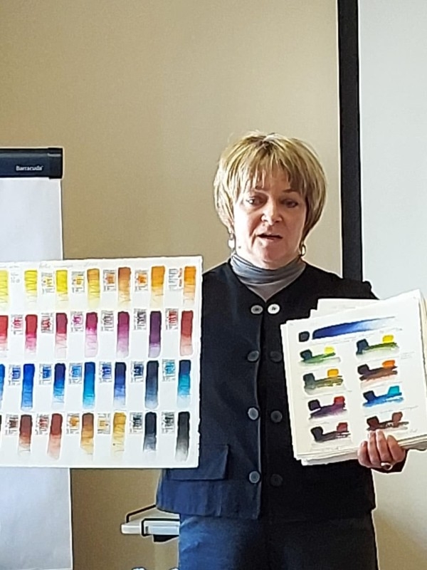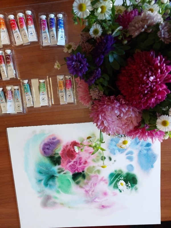 В живой и увлекательной манере Елена поделилась с педагогами секретами своего мастерства. Участники узнали о тонкостях подготовки бумаги, о том, как контролировать влажность для достижения нужного эффекта, и как смело работать с большими цветовыми плоскостями. Организация мастер-класса стала возможной благодаря поддержке давнего партнера Союза педагогов-художников — Завода художественных красок «Невская палитра»