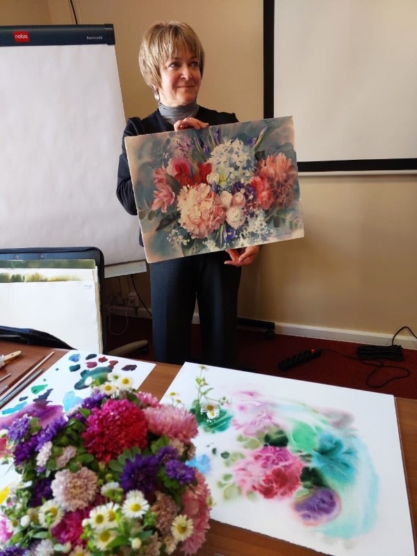 Ярким финалом и настоящим подарком для всех собравшихся стал эксклюзивный мастер-класс от всемирно известной художницы, виртуоза акварели и книжного графика — Елены Базановой.