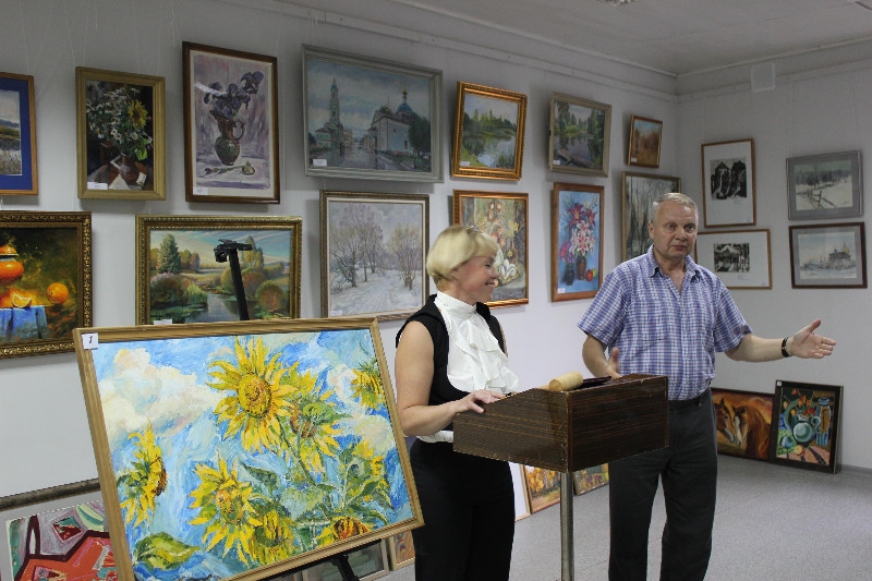 Ведущая аукциона- Лариса Каюшникова и автор идеи проведения благотворительного аукциона член Союза художников СССР Михаил Нехайчик.