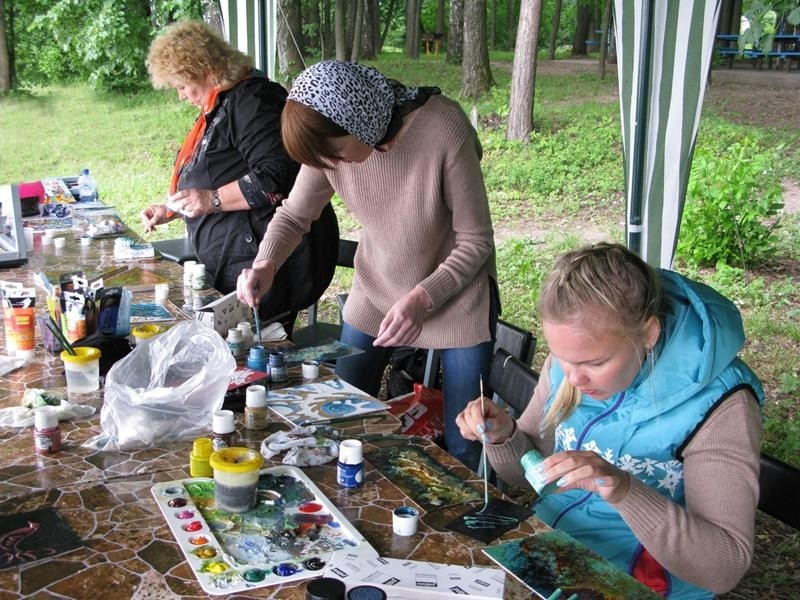 По многочисленным отзывам участников пленэра большого внимания заслуживает мастер-класс «Пейзаж в смешанной технике» Сокольниковой Натальи Михайловны, доктора педагогических наук, профессора, научного руководителя лаборатории дизайна МГГУ им. М.А. Шолохова, члена правления Союза педагогов-художников. Наталья Михайловна очень активный и жизнелюбивый человек, не боится экспериментировать с новыми материалами, много творчески работает сама и вдохновляет коллег.