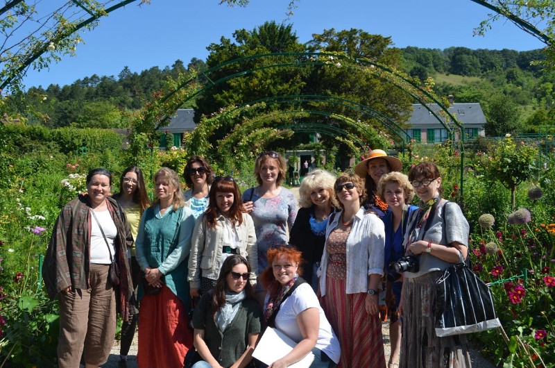 А последний день нашей поездки выдался и вовсе замечательным – мы познакомились с живущей в Париже русской художницей Анной Филимоновой и она устроила для нас потрясающую поездку в Живерни, французскую деревушку, где жил Клод Моне. 20 лет назад Анна приехала во Францию из Санкт-Петербурга, где закончила факультет живописи Академического института им. Репина. С тех пор она ведёт активную жизнь в творческом пространстве Парижа – пишет, участвует в выставках, организует художественные конкурсы и пленеры. Анна привезла нас в Живерни и полдня мы наслаждались атмосферой цветущего сада, того самого, который создал Моне – с прудом, тростником и кувшинками. Ходили по дому художника и по узким улочкам деревни, видели мастерскую Ренуара, Сезанна и других друзей-импрессионистов, которые, приезжая к Моне, останавливались в одной из гостиниц Живерни. Затем мы отправились на обед в местечко Фурж – именно там при поддержке местной мэрии Анна Филимонова организует конкурсы для художников и пленэры для детей. После обеда Анна показала нам мастерскую и выставочный зал мэрии, где мы и организовали итоговую выставку пленэрных работ.