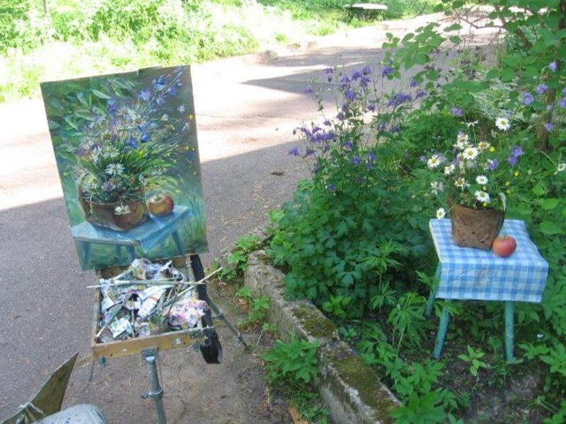 Композиционные зарисовки и этюды пейзажей с ярко выраженной плановостью. Этюды полевых цветов. Итоговая выставка. Вечер отдыха, творческая лаборатория.