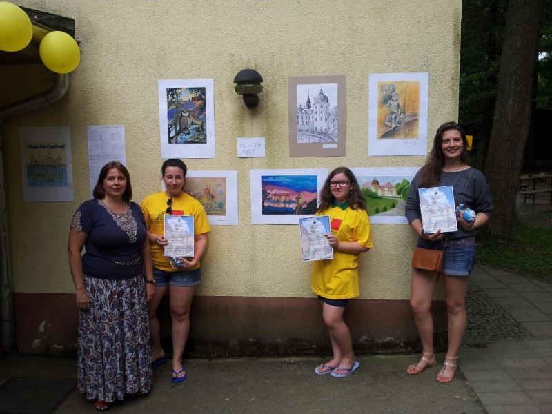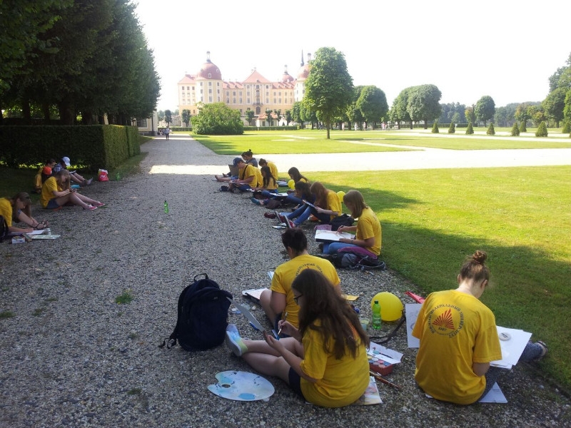 Вот и настал конкурсный день, который мы все очень ждали. 27 июля состоялся Международный фестиваль-конкурс детского и юношеского изобразительного творчества «Пленэр без границ». Тематика 2014 года – «Сокровища Морицбурга». Этот фестиваль проводится в рамках Международного образовательного проекта "Творческая школа для одаренных детей "АртПоколение. Россия – Германия 2014". Конкурс проходил в городке Морицбурге, где находится одноименный замок. Утром, на торжественном открытии, команда из Ростова-на-Дону, представленная учащимися Детской художественной школой им. Чиненовых, Центра довузовской изодеятельности и студентами Художественно-гуманитарного колледжа и Южного федерального университета встретилась с группами из Детской художественной школы № 1 имени П.П. Чистякова" (Екатеринбург), Центра для детей и родителей «Колибри» г. Дрезден и Русско-Немецкого культурного центра г. Нюрнберга (Германия). После костюмированного представления, 60 участников конкурса активно принялись за работу. У них было всего два с половиной часа на то, что бы нарисовать с натуры или придумать и воплотить свою идею в готовую художественную композицию. Большой красивый парк, пруды и замок в барочном стиле, где в 1972 году снимался фильм-сказка «Три орешка для Золушки», всё это вдохновляло наших ребят. Вечером в лагере была организована выставка конкурсных работ, на фоне которой проходило торжественное вручение дипломов участников и награждение победителей и призеров в четырех возрастных группах. Награждение плавно перешло в дружеский ужин и неформальное общение у костра.