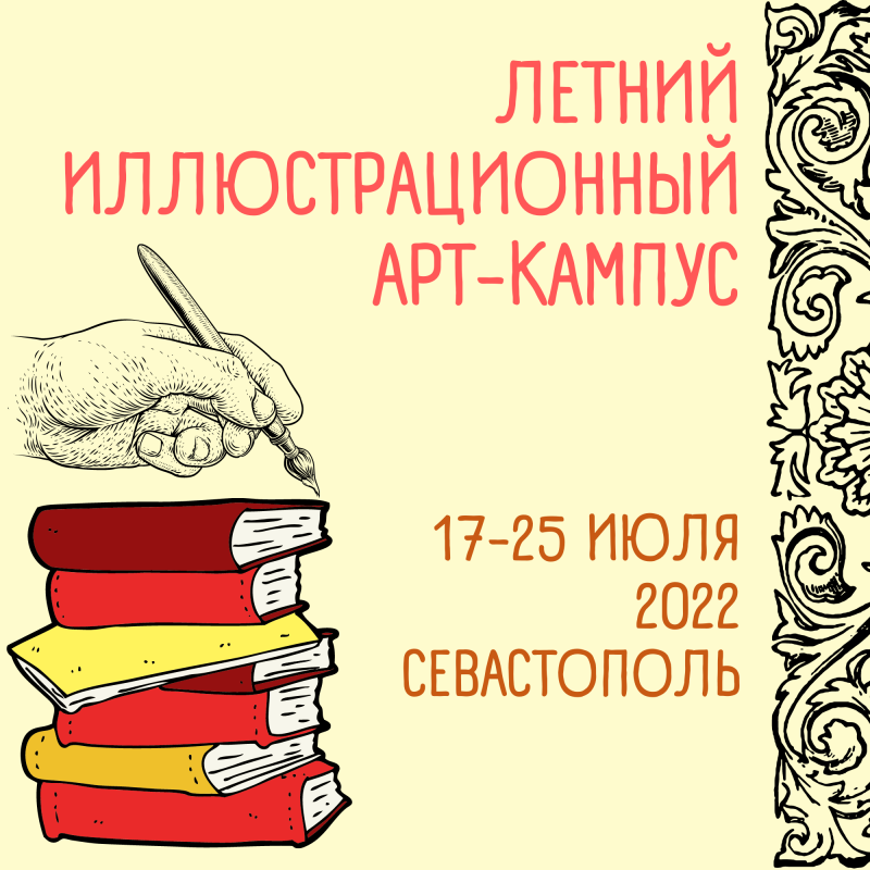30 января 2022 - XVII ВСЕРОССИЙСКИЙ АРТ-КАМПУС ЛЕТНИЙ ВСЕРОССИЙСКИЙ КОНКУРС-ПЛЕНЭР ШКОЛА ИЛЛЮСТРАЦИИ 17.07 – 25.07.2022, Севастополь, Крым ПРИЁМ ЗАЯВОК ДО 12 ИЮНЯ 2022 Уважаемые коллеги! В этом году наш летний севастопольский АРТ-КАМПУС состоится в уже традиционном формате. Мы подготовили программу детской «ШКОЛЫ ИЛЛЮСТРАЦИИ»и ПЕДАГОГИЧЕСКОГО ПЛЕНЭРА для взрослых уча...