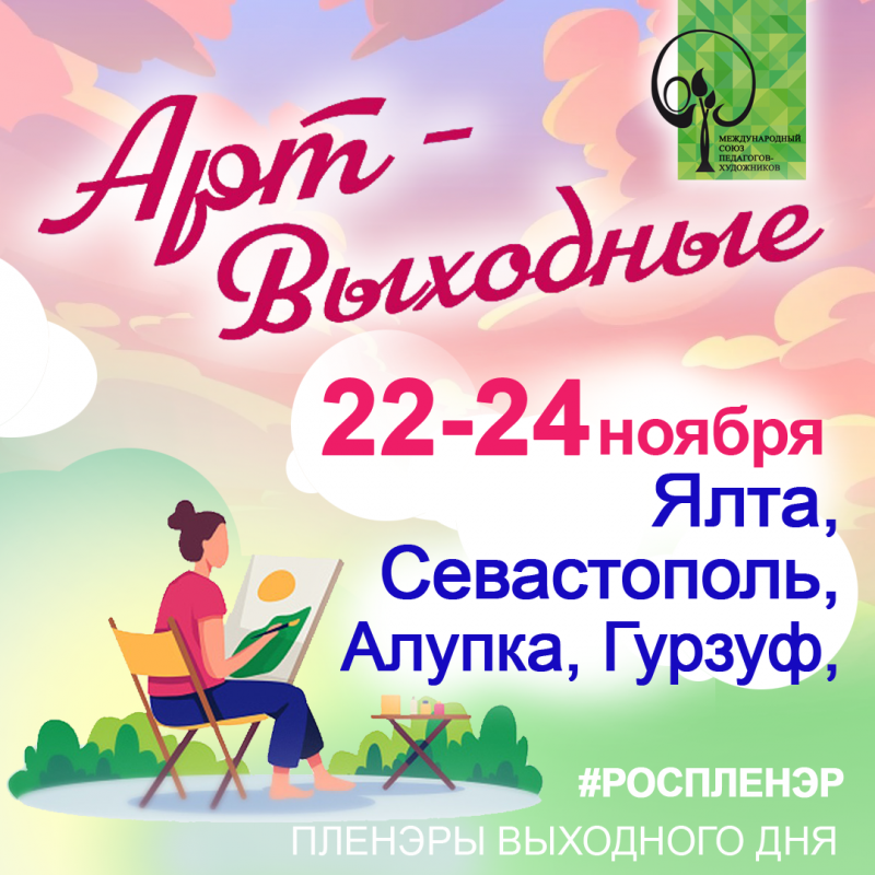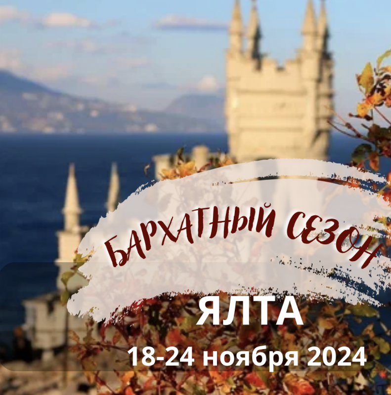 28 сентября 2024 - БАРХАТНЫЙ СЕЗОН Всероссийский очный конкурс-пленэр Ялта, 18-24 ноября 2024 г. Уважаемые коллеги! Безусловно, это самое красивое время в Крыму. В дни триместровых осенних каникул хотим вас пригласить на бархатный арт-сезон в волшебной Ялте. И всё сложится – невероятный отель «Таврида», тот самый, где Соловьев снимал свою «Ассу», останавливались Чехов и Бунин, Рахманинов и Римский-Кор...