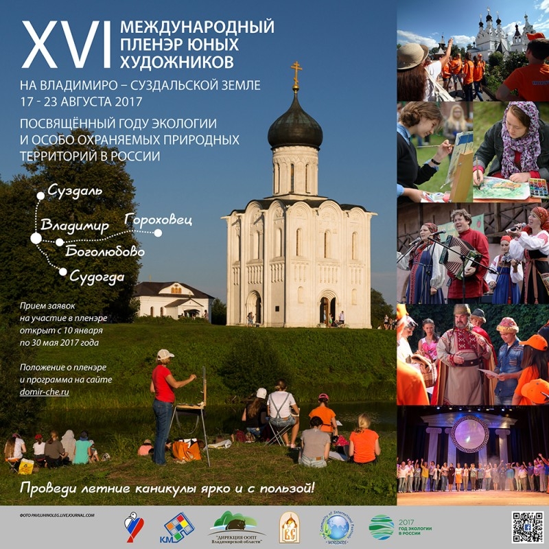 Коллеги! Приглашаем Вас принять участие в международном пленэре-конкурсе наших партнёров! ПОЛОЖЕНИЕ XVI МЕЖДУНАРОДНЫЙ КОНКУРС - ПЛЕНЭР ЮНЫХ ХУДОЖНИКОВ НА ВЛАДИМИРО-СУЗДАЛЬСКОЙ ЗЕМЛЕ, посвящённый Году экологии и особо охраняемых природных территорий в России 17.08-23.08.2017 ВЛАДИМИР - СУЗДАЛЬ - БОГОЛЮБОВО – СУДОГДА - ГОРОХОВЕЦ ОРГАНИЗАТОРЫ: Межрегионал...