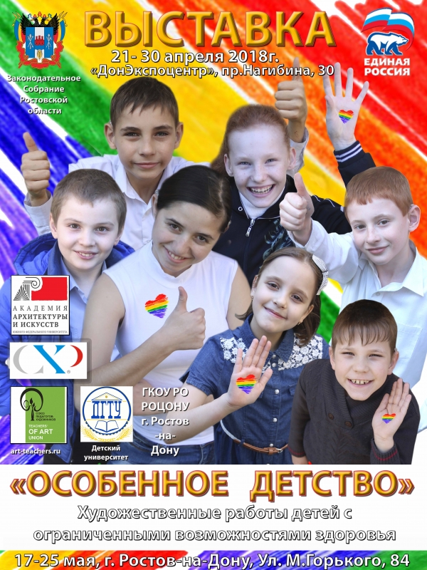 Ростовская областная выставка-конкурс художественных работ детей с ограниченными возможностями здоровья «Особенное детство»-2018. Ростовская область может по праву гордиться реализацией одного из лучших творческих проектов в современной России, направленных на обеспечение доступной среды для детей с ограниченными возможностями здоровья. Уже в третий раз дети с ограниченными возможностями здоровья продемонстрируют свои безграничные возможности в различ...